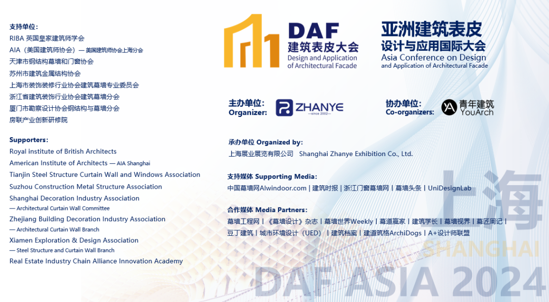 2024年8月2日由上海展業(yè)展覽有限公司主辦,青年建筑協(xié)辦,RIBA 英國皇家建筑師學(xué)會、AIA美國建筑師協(xié)會上海分會、天津市鋼結(jié)構(gòu)幕墻和門窗協(xié)會、蘇州市建筑金